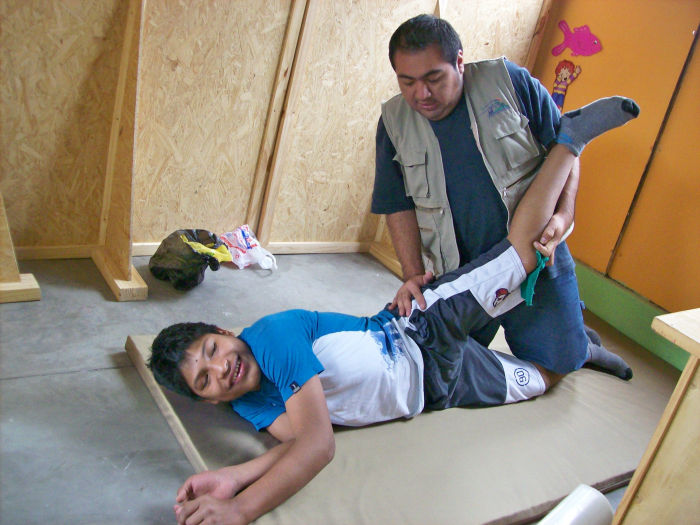 Regelmässige Physiotherapie hilft den Behinderten beweglicher und damit selbständiger zu werden.